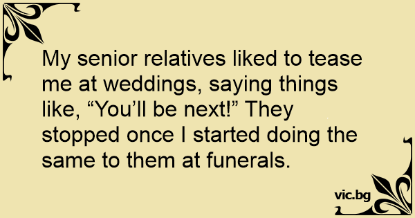 My senior relatives liked to tease me at weddings, saying things like, “You’ll be next!” They stopped once I started doing the same to them at funerals.