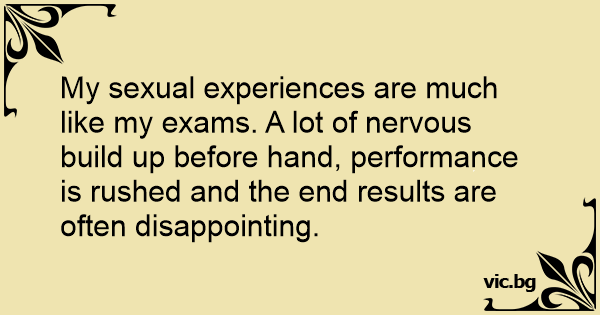 My sеxuаl experiences are much like my exams. A lot of nervous build up before hand, performance is rushed and the end results are often disappointing.