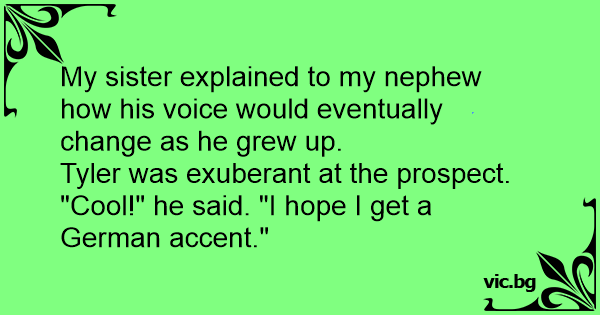 "Cool!" he said. "I hope I get a German accent."