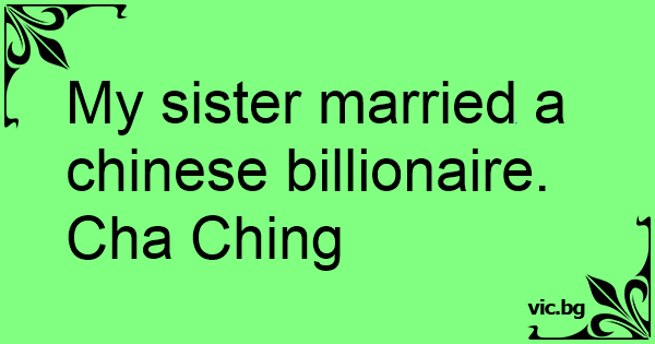 My sister married a chinese billionaire. Cha Ching