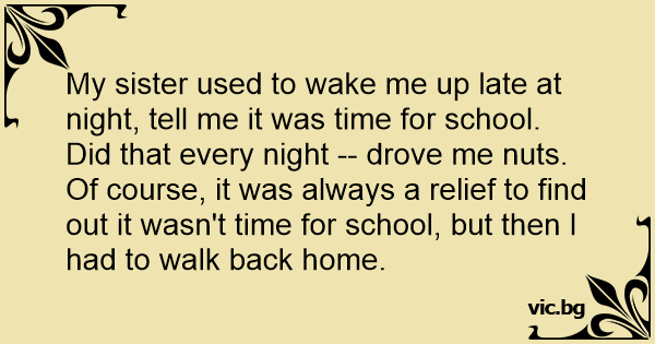 My sister used to wake me up late at night, tell me it was time for school. Did that every night -- drove me nuts. Of course, it was always a relief to find out it wasn't time for school, but then I had to walk back home.