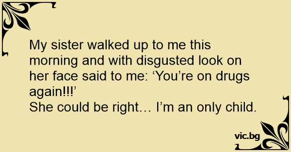My sister walked up to me this morning and with disgusted look on her face said to me: ‘You’re on drugs again!!!’