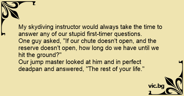 My skydiving instructor would always take the time to answer any of our sтuрid first-timer questions.