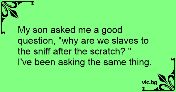My son asked me a good question, "why are we slaves to the sniff after the scratch? "