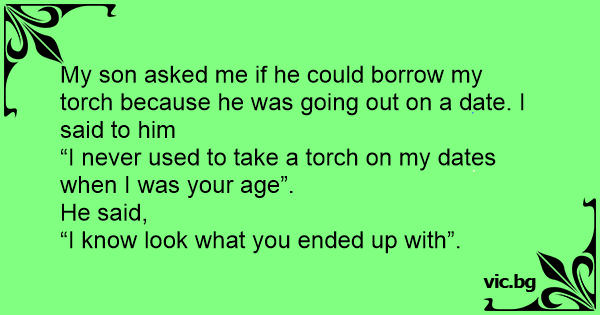 My son asked me if he could borrow my torch because he was going out on a date. I said to him