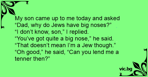 My son came up to me today and asked “Dad, why do Jews have big noses?”