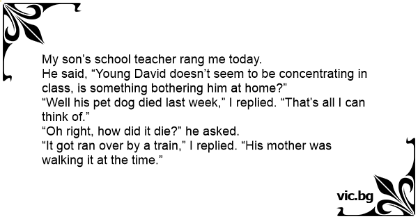 He said, “Young David doesn’t seem to be concentrating in class, is something bothering him at home?”