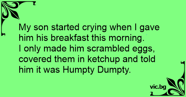 I only made him scrambled eggs, covered them in ketchup and told him it was Humpty Dumpty.