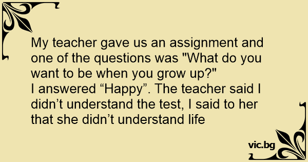 I answered “Happy”. The teacher said I didn’t understand the test, I said to her that she didn’t understand life