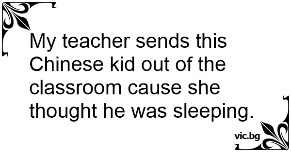 My teacher sends this Chinese kid out of the classroom cause she thought he was sleeping.
