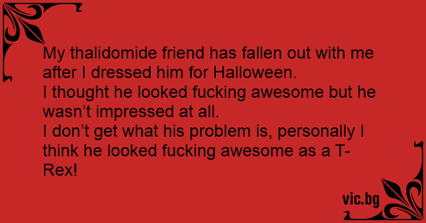 My thalidomide friend has fallen out with me after I dressed him for Halloween.