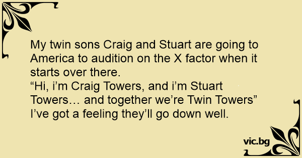 “Hi, i’m Craig Towers, and i’m Stuart Towers… and together we’re Twin Towers”