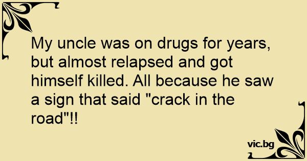 My uncle was on drugs for years, but almost relapsed and got himself killed. All because he saw a sign that said "сrаск in the road"!!