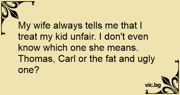 My wife always tells me that I treat my kid unfair. I don't even know which one she means.
