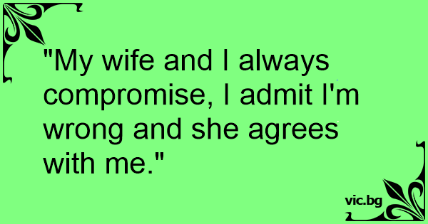 "My wife and I always compromise, I admit I'm wrong and she agrees with me."
