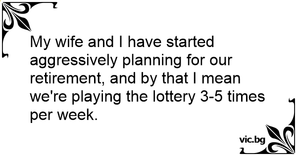 My wife and I have started aggressively planning for our retirement, and by that I mean we're playing the lottery 3-5 times per week.