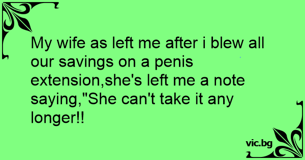 My wife as left me after i blew all our savings on a реnis extension,she's left me a note saying,"She can't take it any longer!!