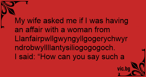 My wife asked me if I was having an affair with a woman from Llanfairpwllgwyngyllgogerychwyrndrobwyllllantysiliogogogoch.