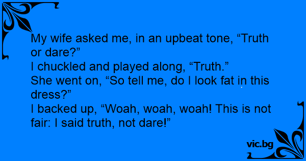 My wife asked me, in an upbeat tone, “Truth or dare?”