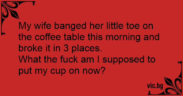 My wife banged her little toe on the coffee table this morning and broke it in 3 places.