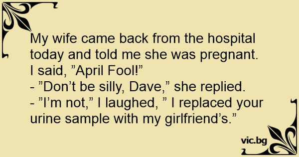 My wife came back from the hospital today and told me she was pregnant.