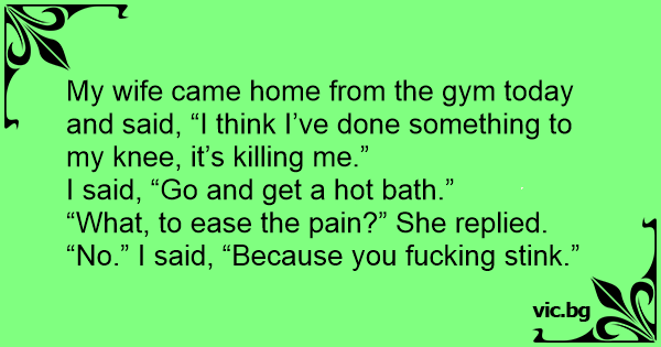 My wife came home from the gym today and said, “I think I’ve done something to my knee, it’s killing me.”