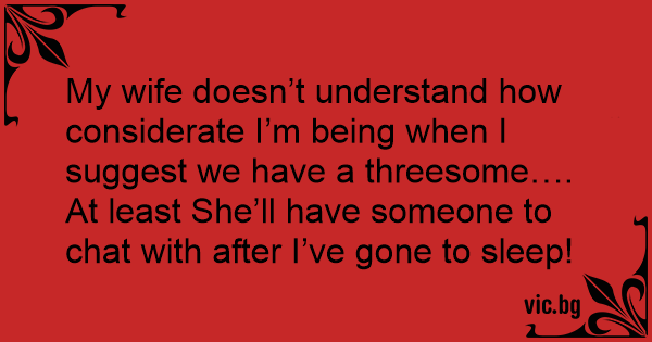 My wife doesn’t understand how considerate I’m being when I suggest we have a тhrееsоме…. At least She’ll have someone to chat with after I’ve gone to sleep!
