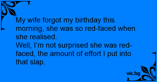 My wife forgot my birthday this morning, she was so red-faced when she realised.