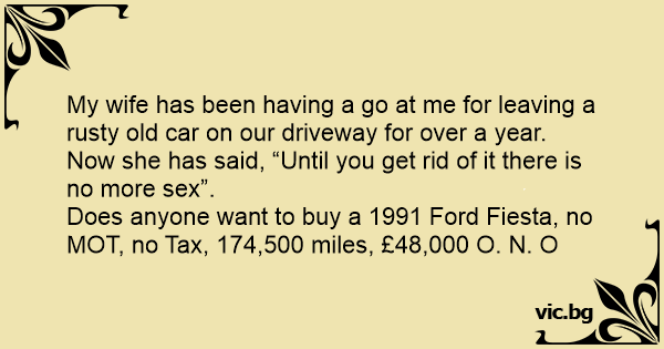 Does anyone want to buy a 1991 Ford Fiesta, no MOT, no Tax, 174,500 miles, £48,000 O. N. O