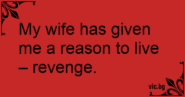 My wife has given me a reason to live – revenge.