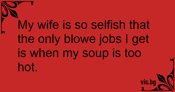 My wife is so selfish that the only blowe jobs I get is when my soup is too hot.