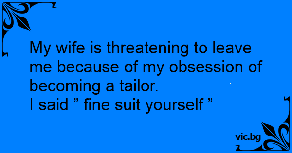My wife is threatening to leave me because of my obsession of becoming a tailor.