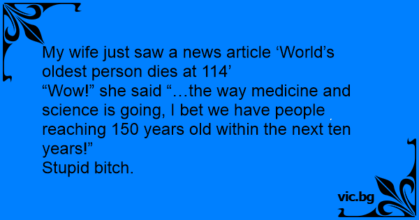 “Wow!” she said “…the way medicine and science is going, I bet we have people reaching 150 years old within the next ten years!”