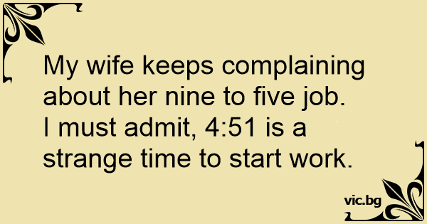 My wife keeps complaining about her nine to five job.