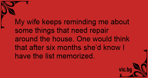 My wife keeps reminding me about some things that need repair around the house. One would think that after six months she’d know I have the list memorized.