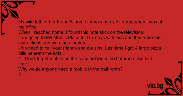 My wife left for her Father's home for vacation yesterday, when I was at my office.