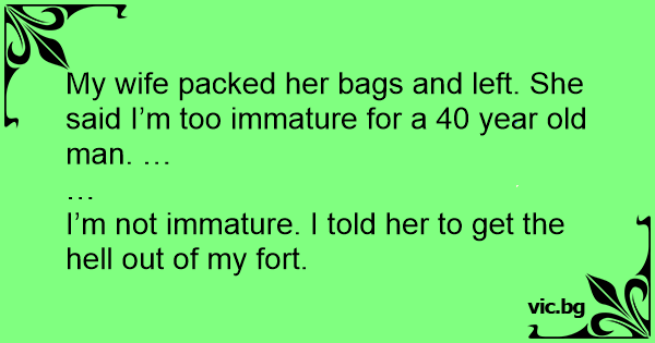 My wife packed her bags and left. She said I’m too immature for a 40 year old man. …