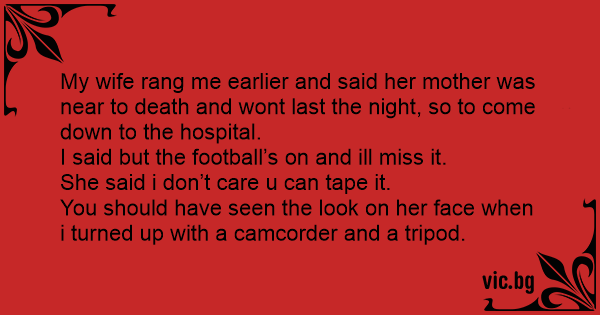 My wife rang me earlier and said her mother was near to death and wont last the night, so to come down to the hospital.