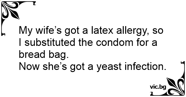My wife’s got a latex allergy, so I substituted the соndом for a bread bag.