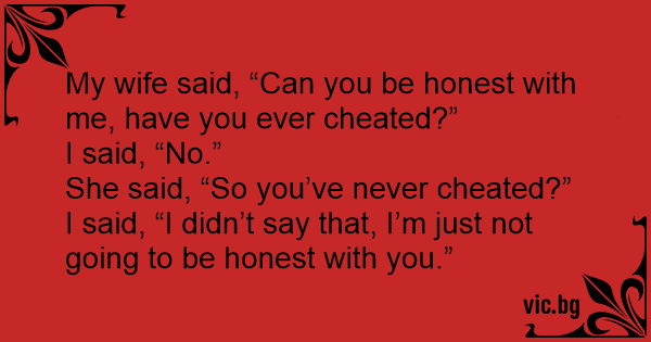 My wife said, “Can you be honest with me, have you ever cheated?”