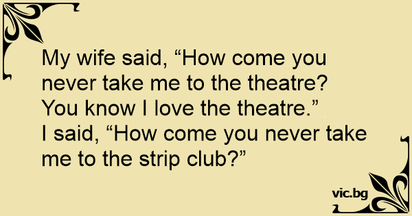 My wife said, “How come you never take me to the theatre? You know I love the theatre.”