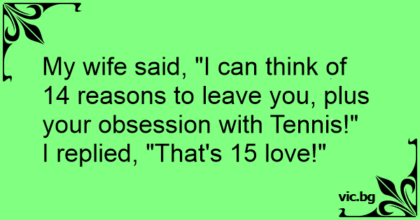 My wife said, "I can think of 14 reasons to leave you, plus your obsession with Tennis!"