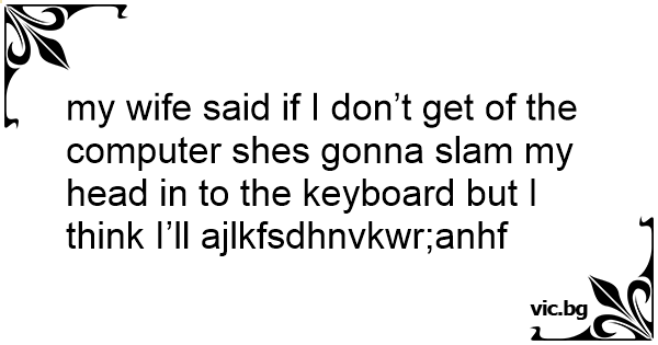 my wife said if I don’t get of the computer shes gonna slam my head in to the keyboard but I think I’ll ajlkfsdhnvkwr;anhf