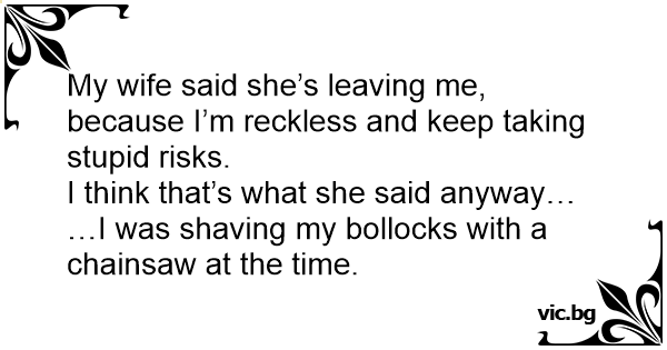 My wife said she’s leaving me, because I’m reckless and keep taking sтuрid risks.
