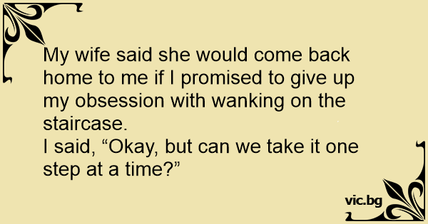 My wife said she would come back home to me if I promised to give up my obsession with wanking on the staircase.