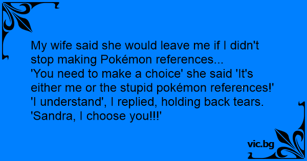 My wife said she would leave me if I didn't stop making Pokémon references...