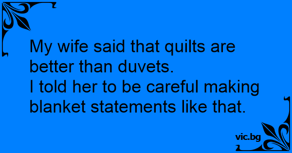 My wife said that quilts are better than duvets.