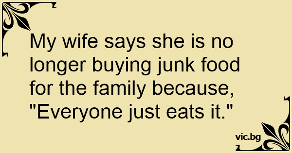 My wife says she is no longer buying junk food for the family because, "Everyone just eats it."