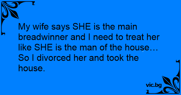 My wife says SHE is the main breadwinner and I need to treat her like SHE is the man of the house…