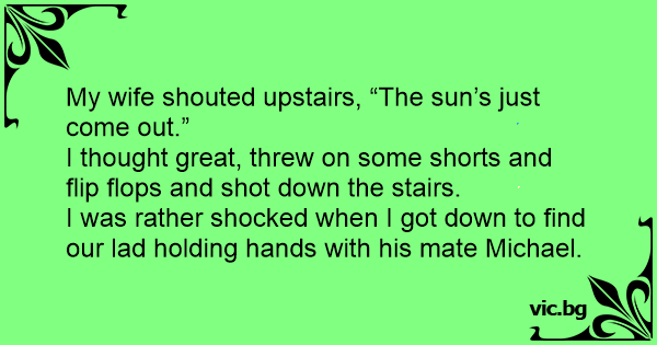 My wife shouted upstairs, “The sun’s just come out.”